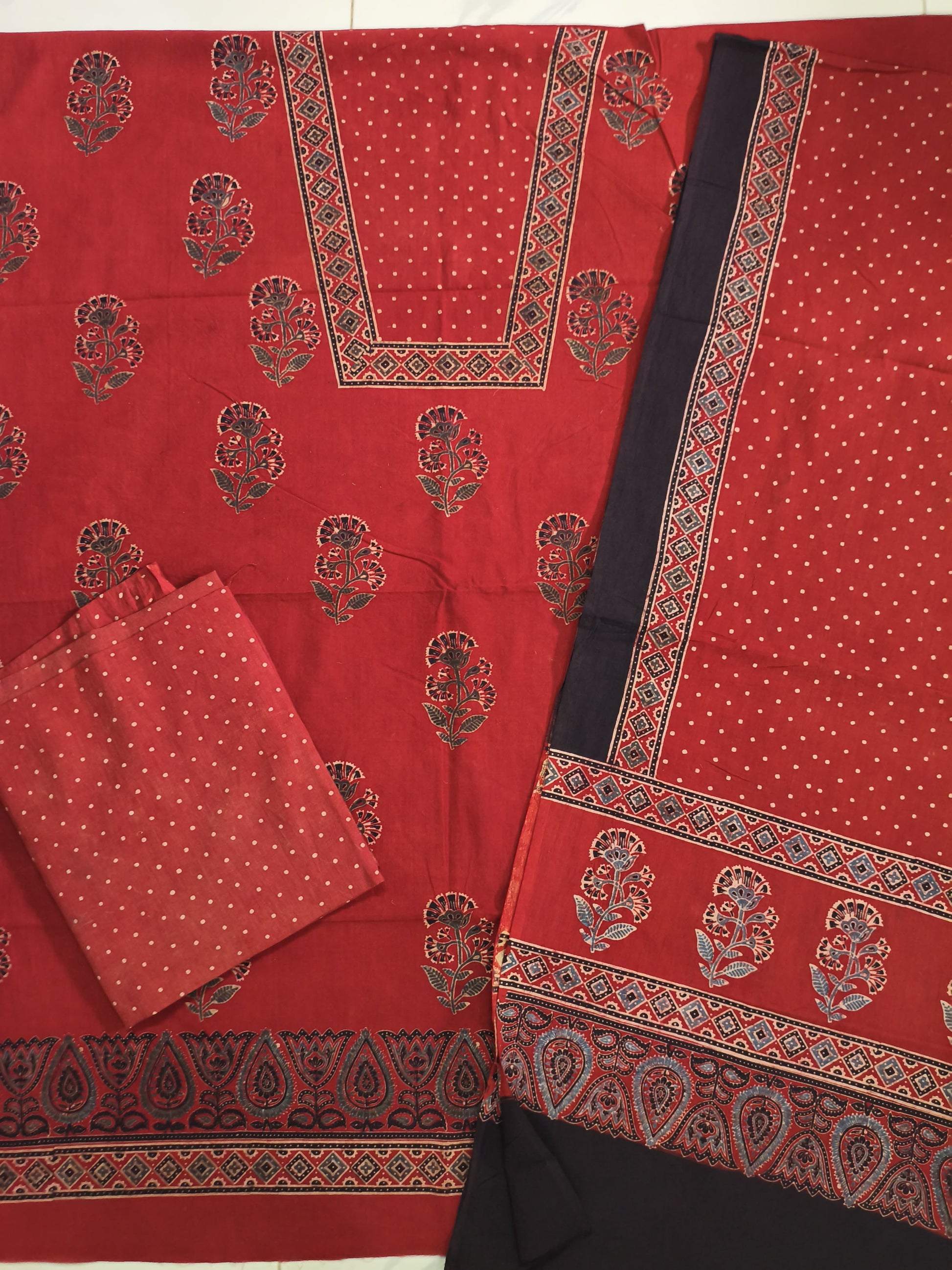 Ajrak suit two piece cotton material in cream and red and black combo2 traditional block and authentic
